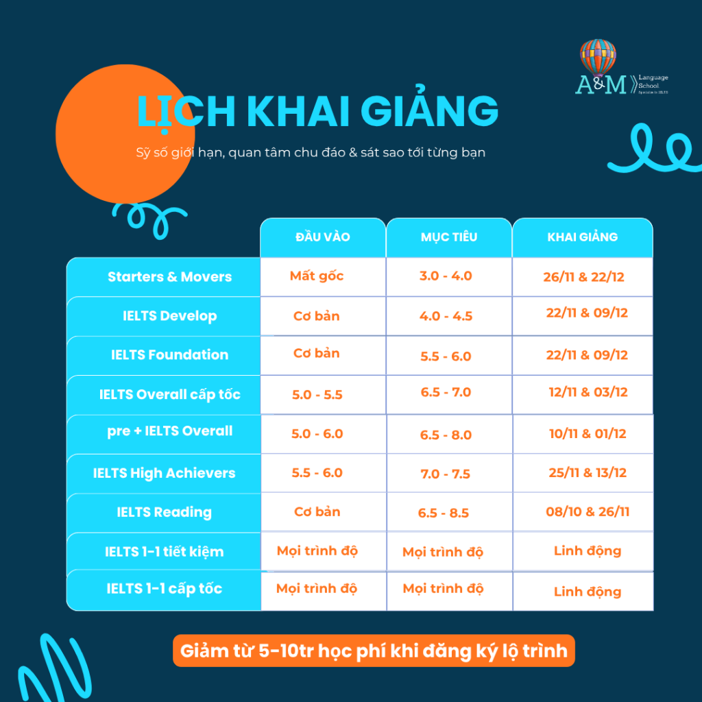 Team A&M sẽ tư vấn cụ thể về trình độ của các bạn và lộ trình học phù hợp qua bài test này nhé!!